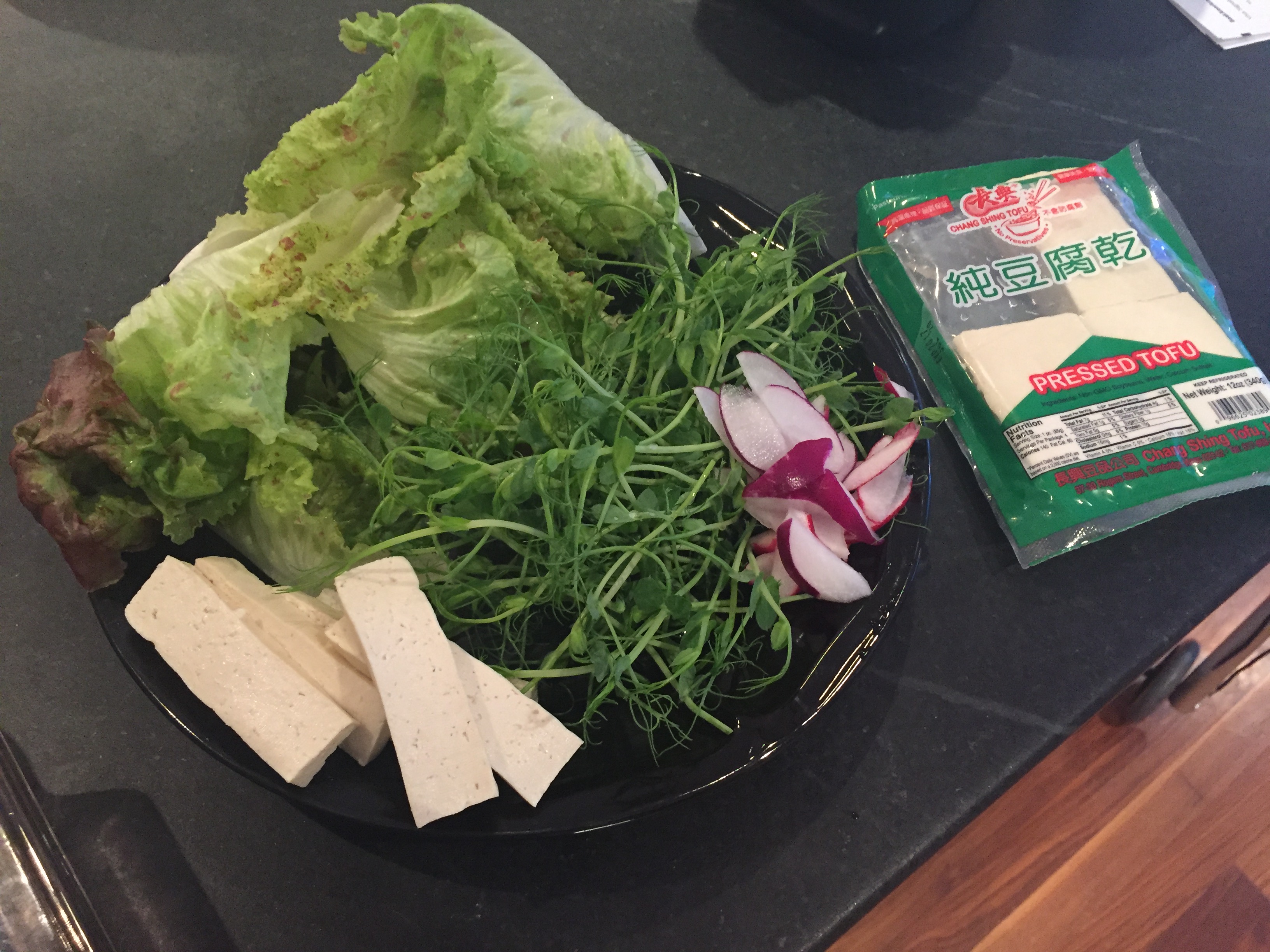 When so many fresh and tasty greens are available, I usually revert to rice paper rolls and my favorite peanut sauce for dipping. This week’s ingredients included pea tendrils, red leaf lettuce, slivered radishes and pressed tofu. The original plan was to go for Jordan Brother’s shrimp, but they ran out before I got there (a good thing!) If you know you want something at pickup on Wednesday from the Jordan Brother’s seafood truck, always best to call ahead so they can bring it for you.