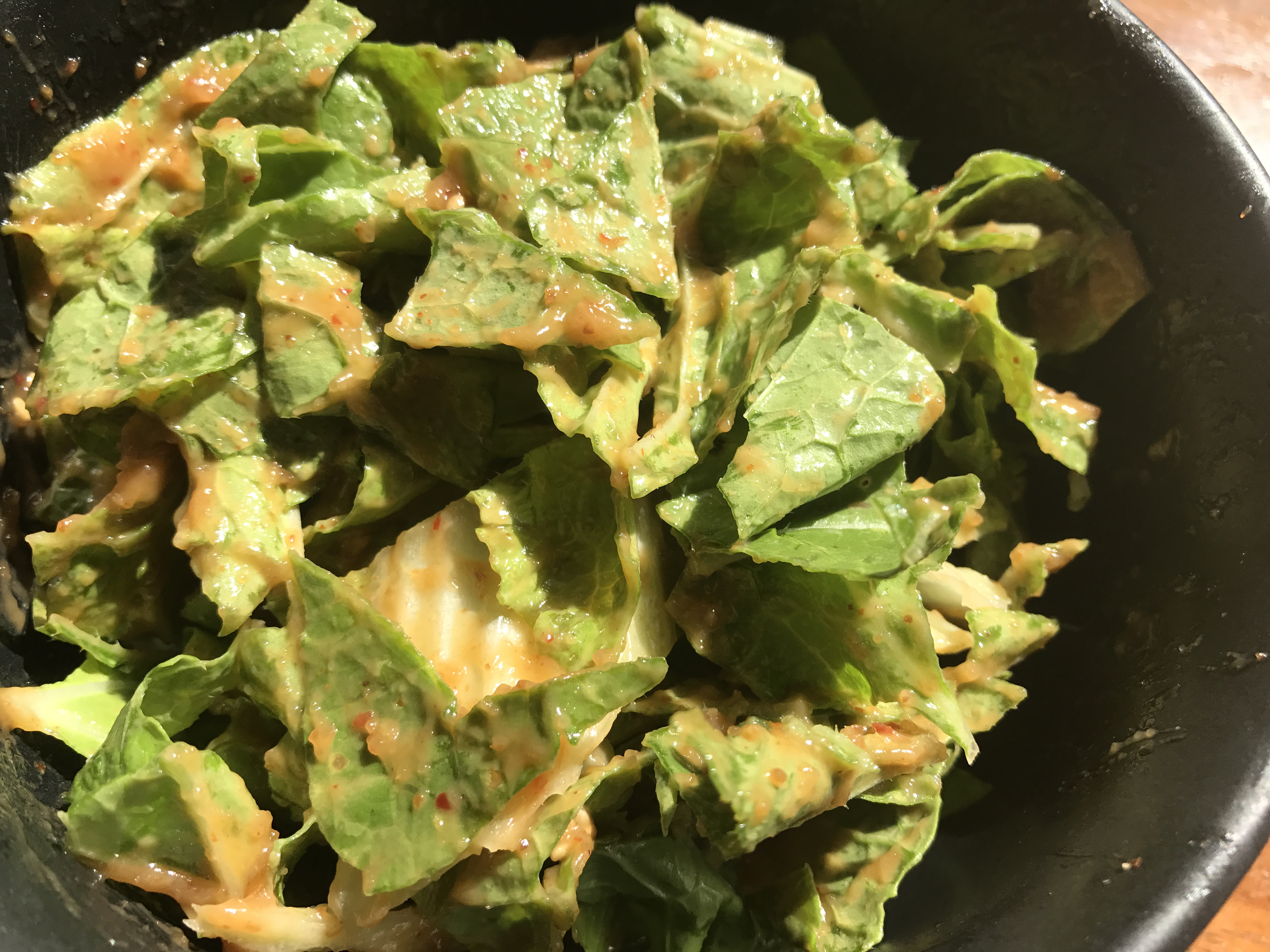 Here we have the (sideways photo of) creamy sweet and sour dressing for the sweet and sour lettuce. I always like this one on any lettuce that I accidentally let wilt. Seems almost like a waste on this vibrant crispy lettuce though. I’ll plan to post the recipe when I’m out of the woods, so if you have any leftover lettuce by then, you’ll have a backup plan.