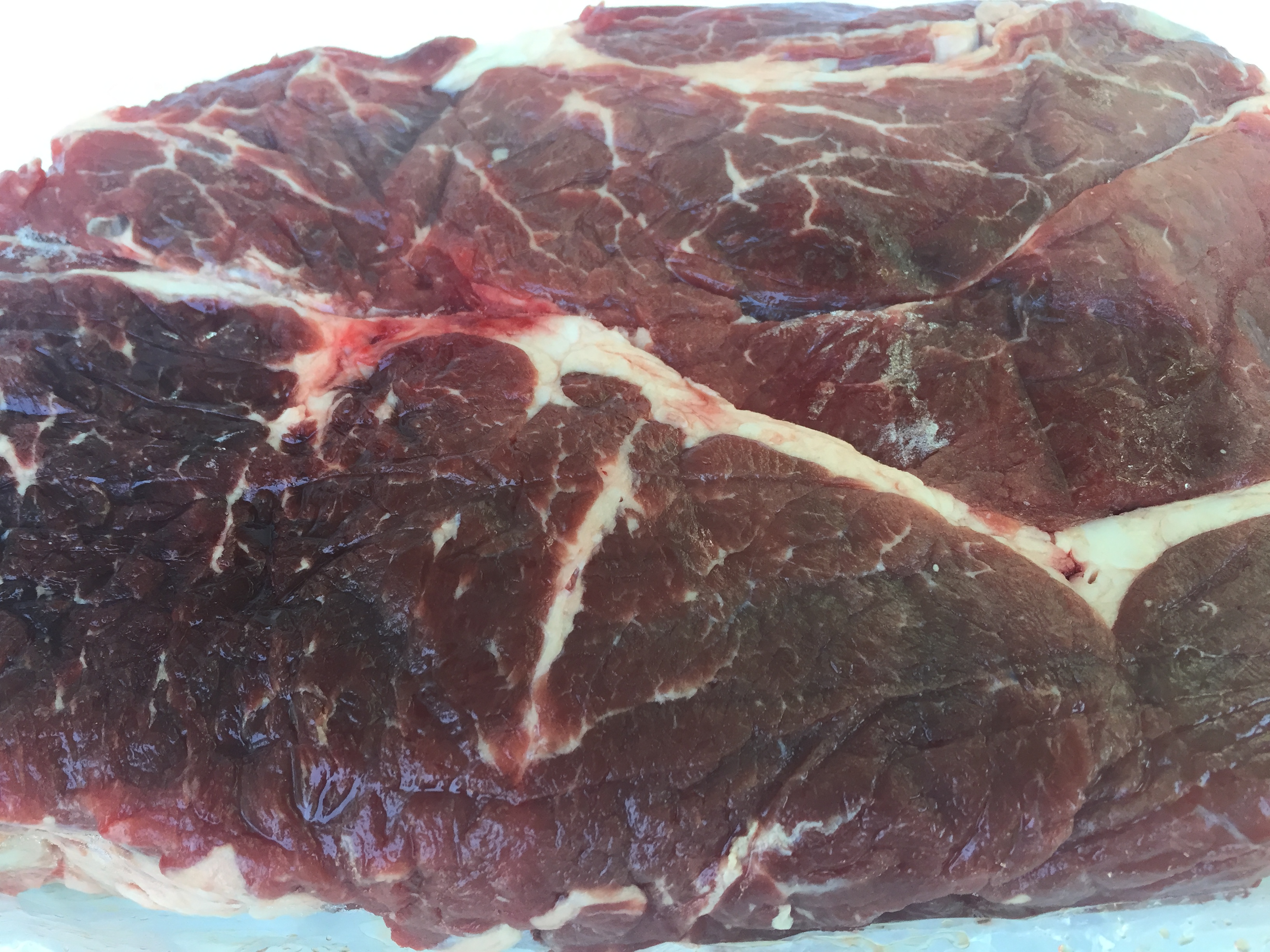 Look at that marbling! It’s considered a lean cut, coming from up near the shoulder blade making it ideal for a slow cooker or pot roast situation.