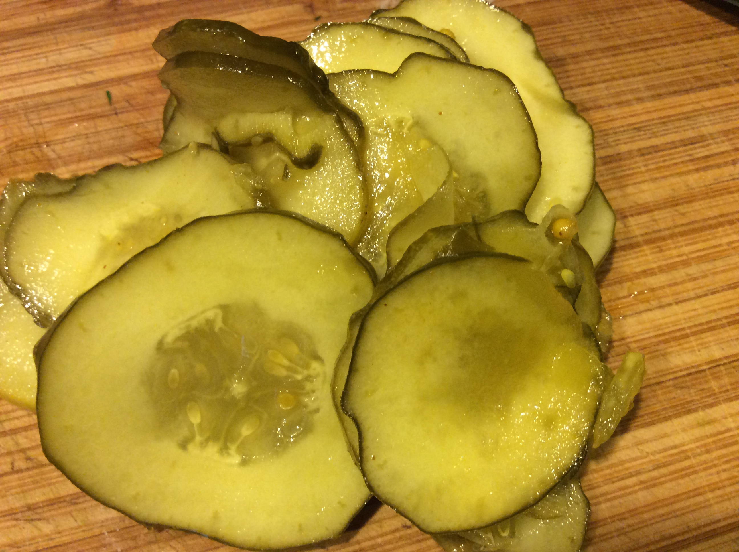 Two versions of refrigerator pickles, one with bread and butter sweetness, the other an old fashioned dill.