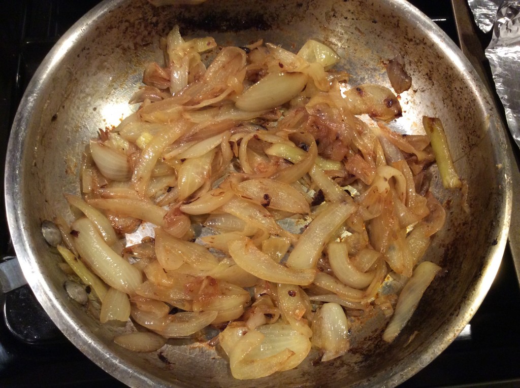 People often think caramelization and they think onions. Well, the onion family loves to be deep brown in color and nutty in flavor (as well as fill your house with the Rolls-Royce of aromas). I happen to have a surplus of onions from my Springdell winter share so let’s begin. Start by slicing your onions about 1/8 inch think, or thicker if you like. Some people think the thinner the better, but that’s not the case here. Giving a slightly thicker cut will prevent your onions from drying out, they have a long cook they need to hold up for. You are not going for mushy onions are you?