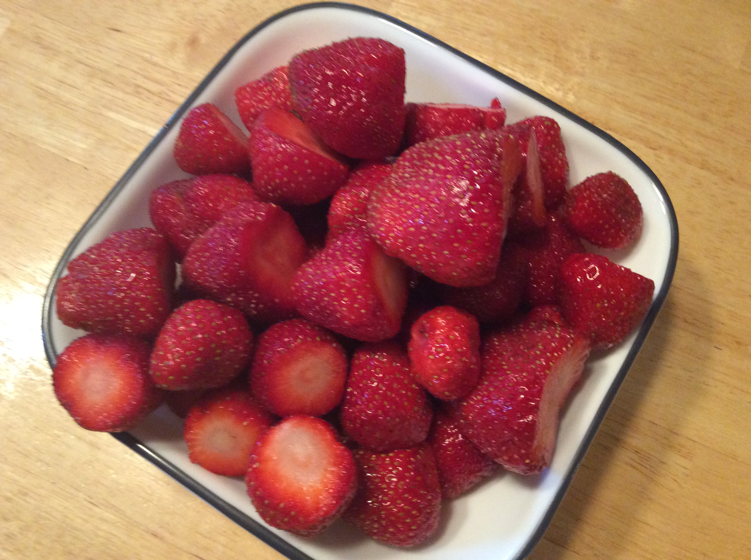 Fellow Springdellian Lisa Simons-Kearns baked this delicious recipe inspired by Ellen Rainey’s recipe on All Recipes. Here is Lisa’s version, which cuts down on the sugar a bit while increasing the strawberries. Thanks for sharing, Ellen and Lisa!