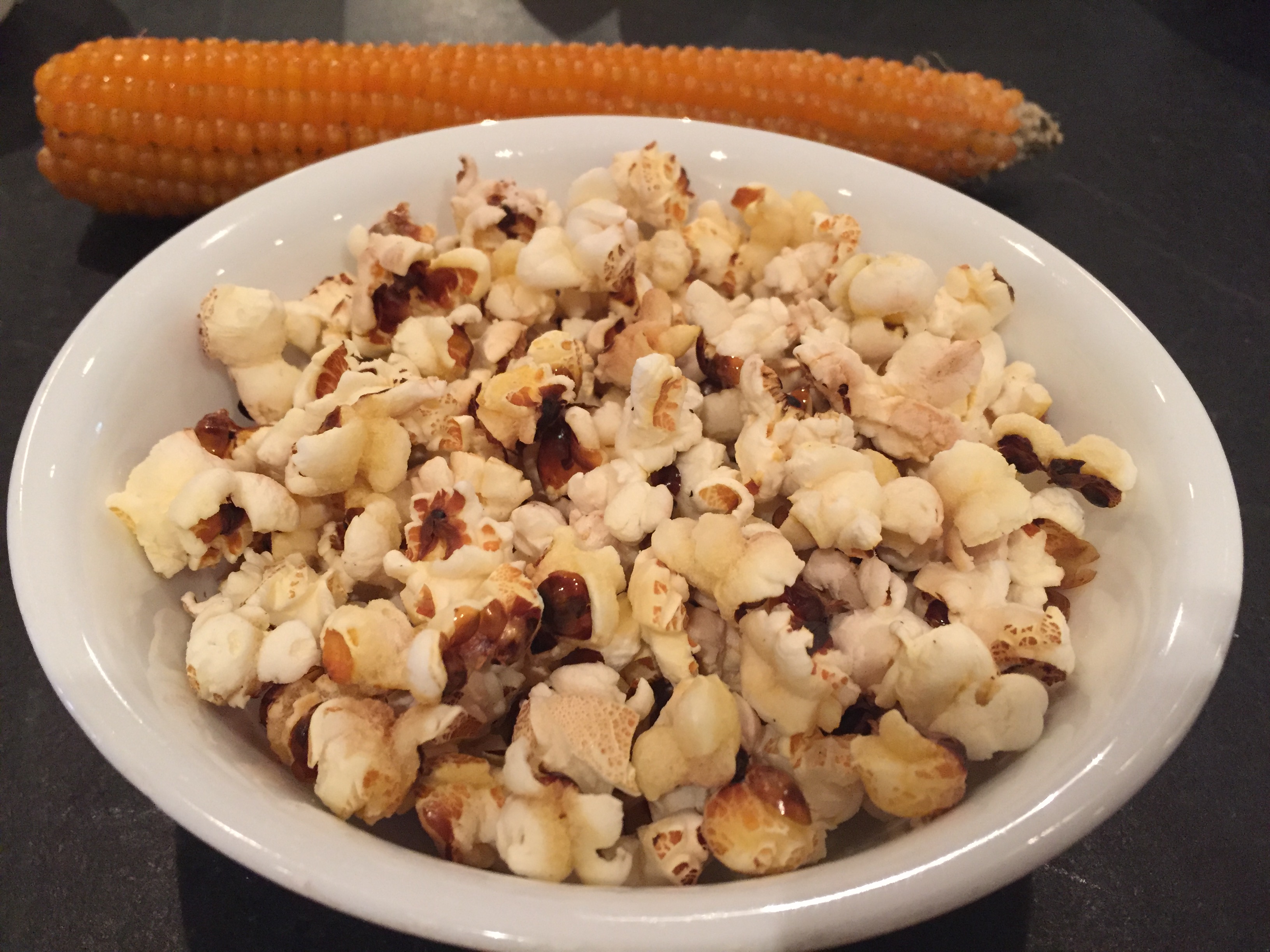 As with any popcorn, there were a few that half-popped, but these junior poppers were the best! With conventional popcorn, half-popped kernels usually are way too hard to eat. These kernels were not only edible but scrumptious and with a really good texture, much less crunchy than you’d think. They are a snack all their own!